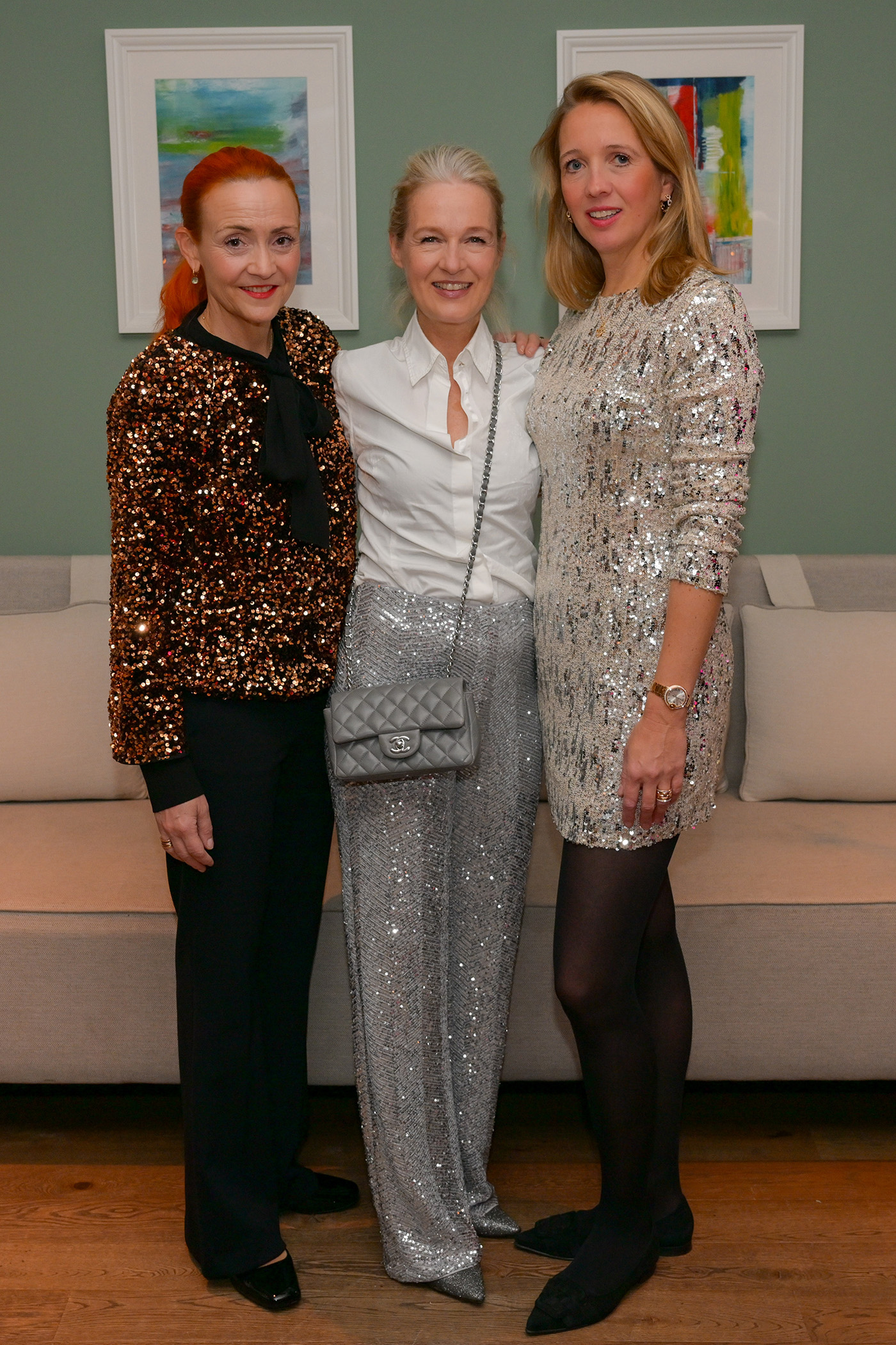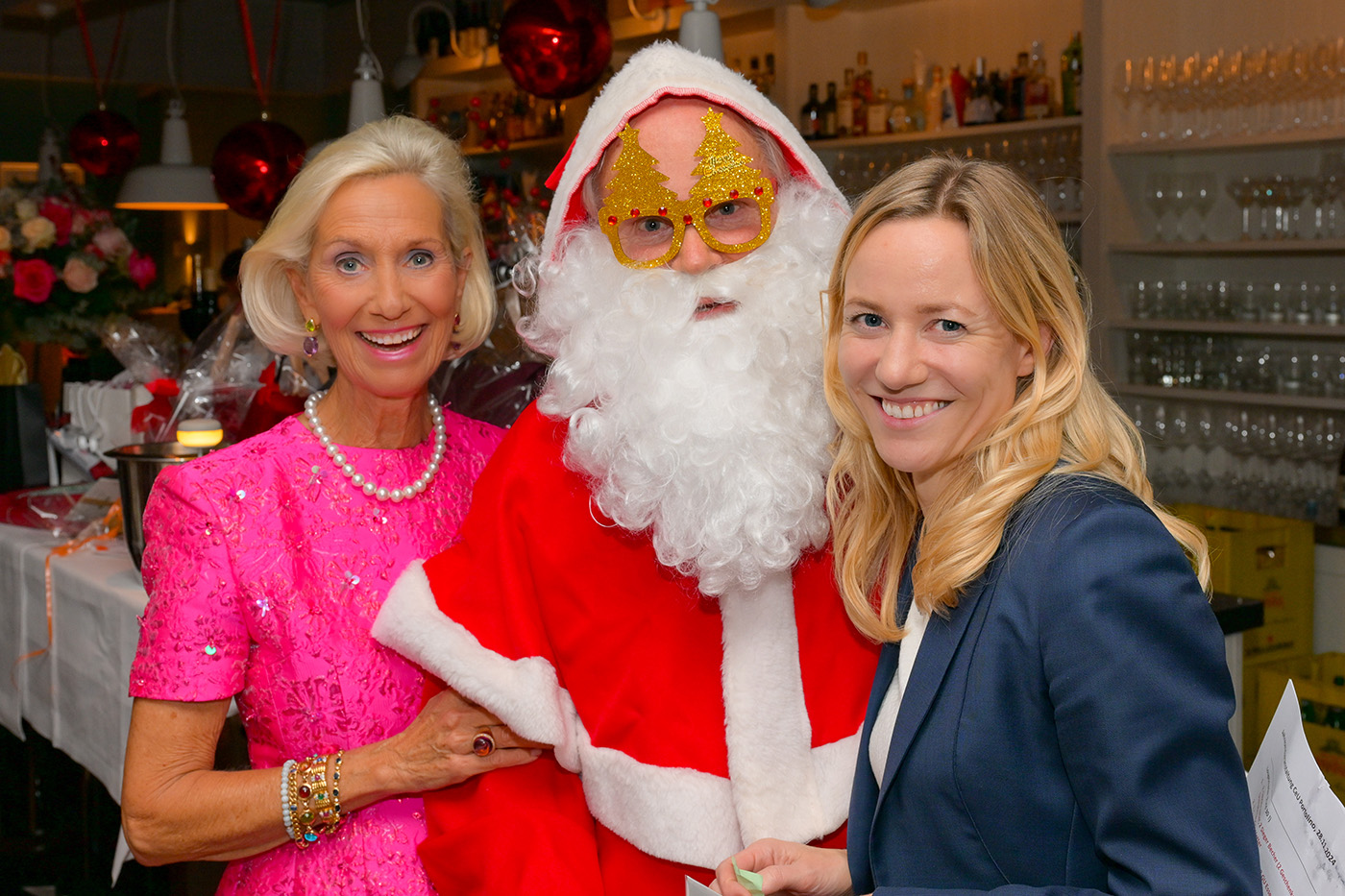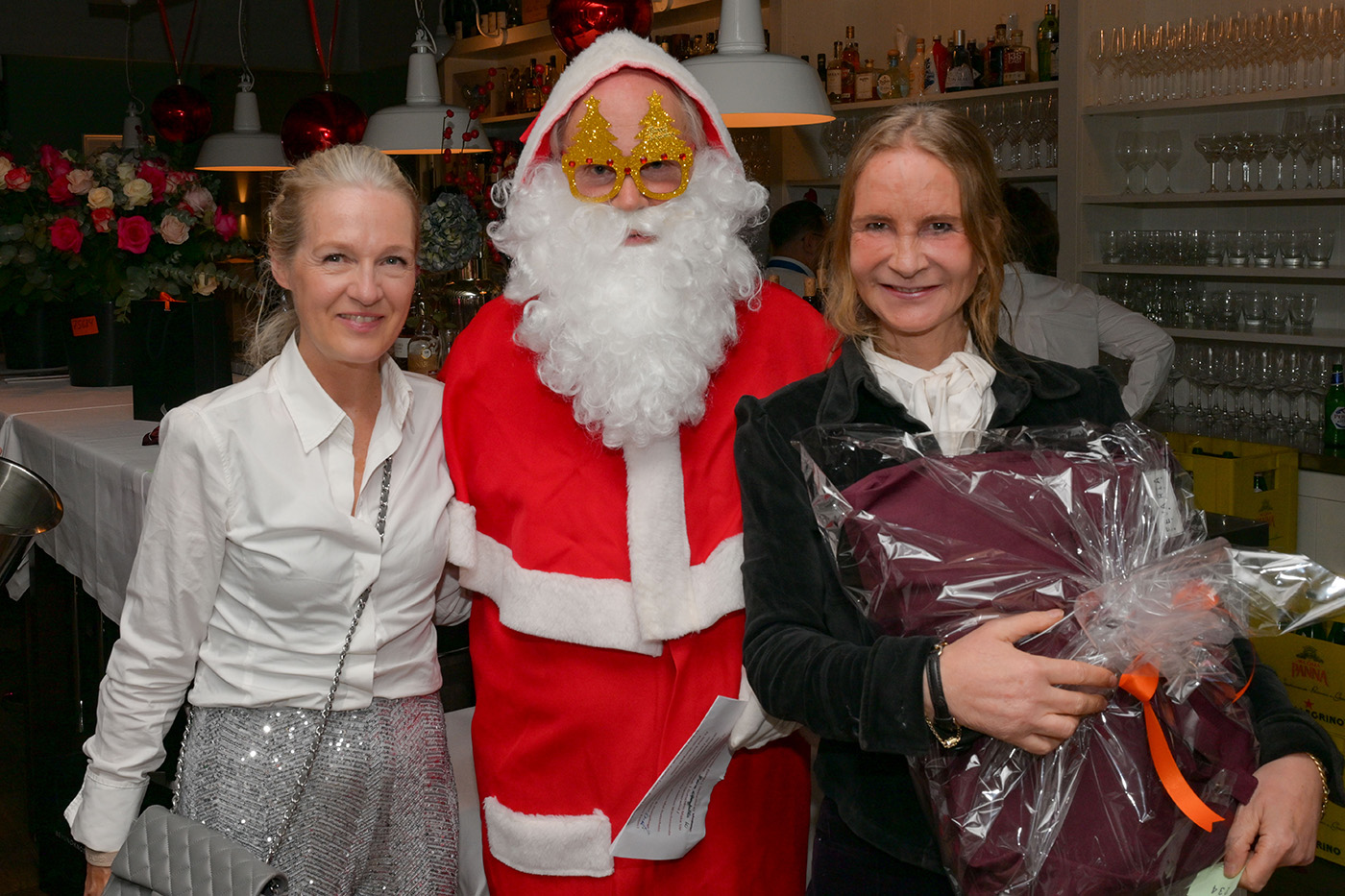Julia Becker Verlegerin Funke Medien, Kristina Tröger CeU-Präsidentin, Santa (Ulrich Tröger), Martina Buckenmaier RIANI und Siggi Spiegelburg Couture