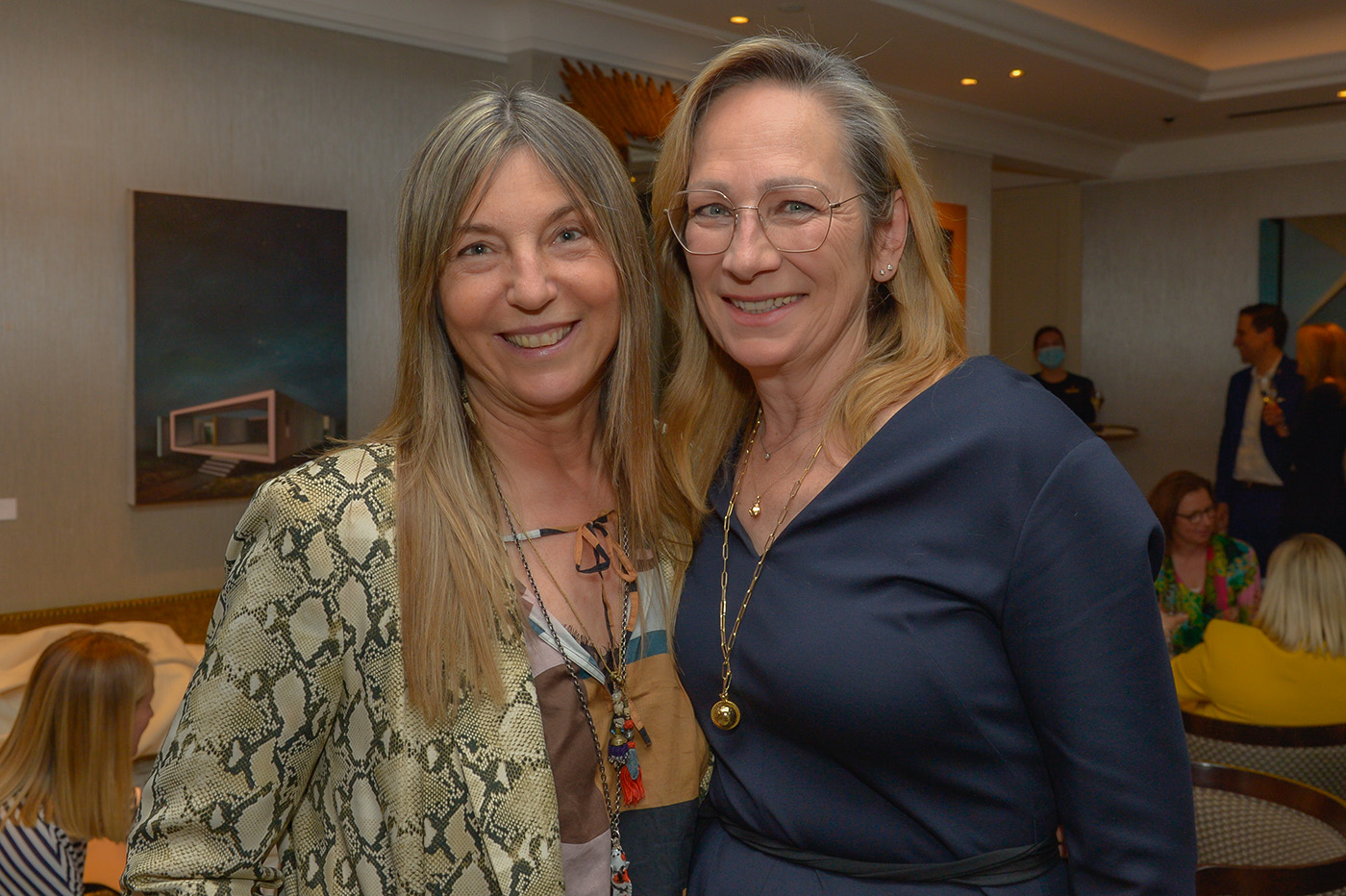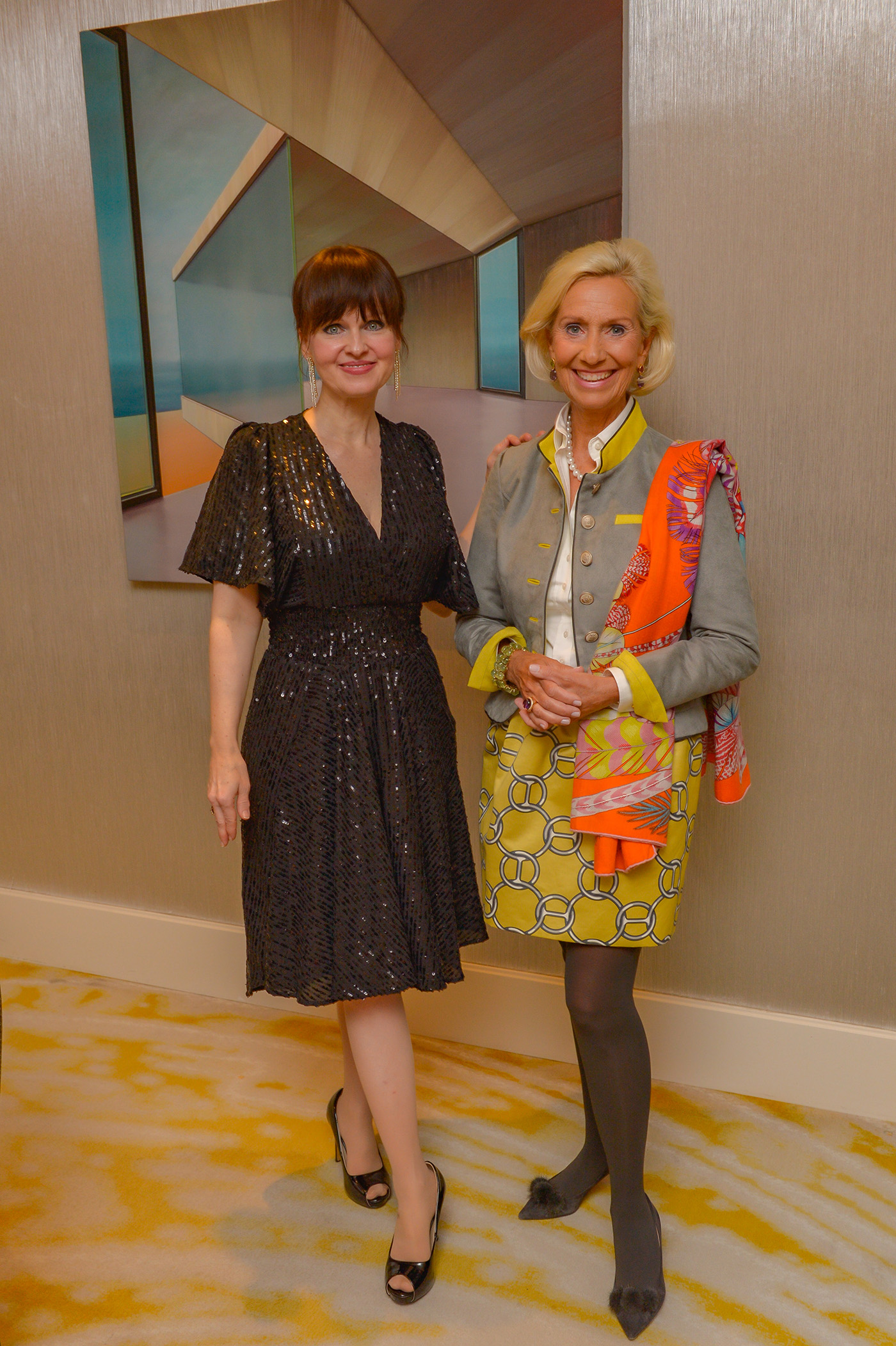Dort gab CeU Mitglied Dr. Sonja Lechner, Kunstkonnex Artconsulting, den geladenen Ladies eine Einführung in die Ausstellung „Tobias Stutz – Wohnwelten“. Der Künstler malt Ausschnitte aus Architekturen oder ikonische Gebäude etwa des Bauhauses in Öl auf Leinwand, sie dargestellt wiedergebend, dass man geometrische Formen ihrer Struktur zu erkennen meint und die Zeitlosigkeit der dargestellten Häuser zu schätzen lernt. Nach der Einführung gab es das gewohnt wunderbare Flying Buffet des Spitzenhotels.