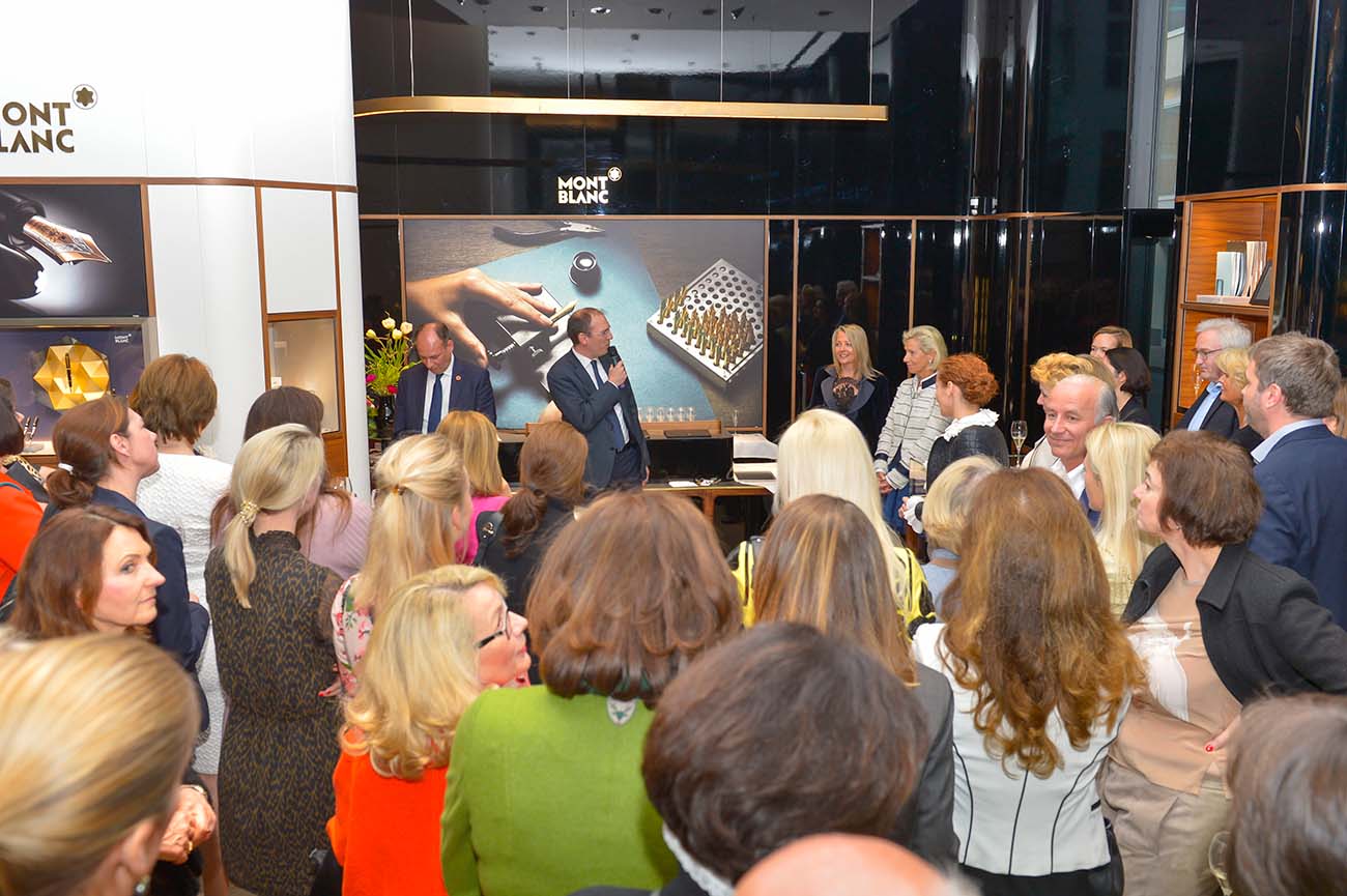 Doch Montblanc fertigt nicht nur hochwertige Schreibgeräte, sondern auch Uhren, Lederwaren und Schmuck. Davon konnten sich die Ladies bei einem inspirierenden Abend mit einer exklusiv für den CeU stattfindenden Veranstaltung in der Montblanc Boutique am Neuen Wall überzeugen. Über 100 CeU-Mitglieder und Gäste lauschten den freundlichen Begrüßungsworten und dem Kurzvortag des Montblanc Deutschland Chefs Oliver Gößler über das Unternehmen und dessen Markenbotschaft. Die Leiterin der Montblanc-Boutique, Ulrike Stratmann, weihte die Teilnehmer kenntnisreich in die Geheimnisse ausgewählter Ausstellungsstücke ein, und führte die Gäste in den Zauber der Montblanc Produktwelt ein. Der Abend fand seine Abrundung in einem Champagner Tasting in Kooperation mit Champagne Pommery. Nach einer kurzen Einführung in die Historie und Struktur der Marke Pommery von Stefan Reidemeister konnten die Gäste fünf verschiedene Sorten verköstigen. Dazu wurde Köstlichkeiten vom Restaurant Tarantella gereicht. Die CeU Mitglieder und Gäste waren begeistert von den wundervollen Ausstellungsstücken und genossen den rundum gelungenen Tagesausklang unter dem Zeichen des weißen Sterns.