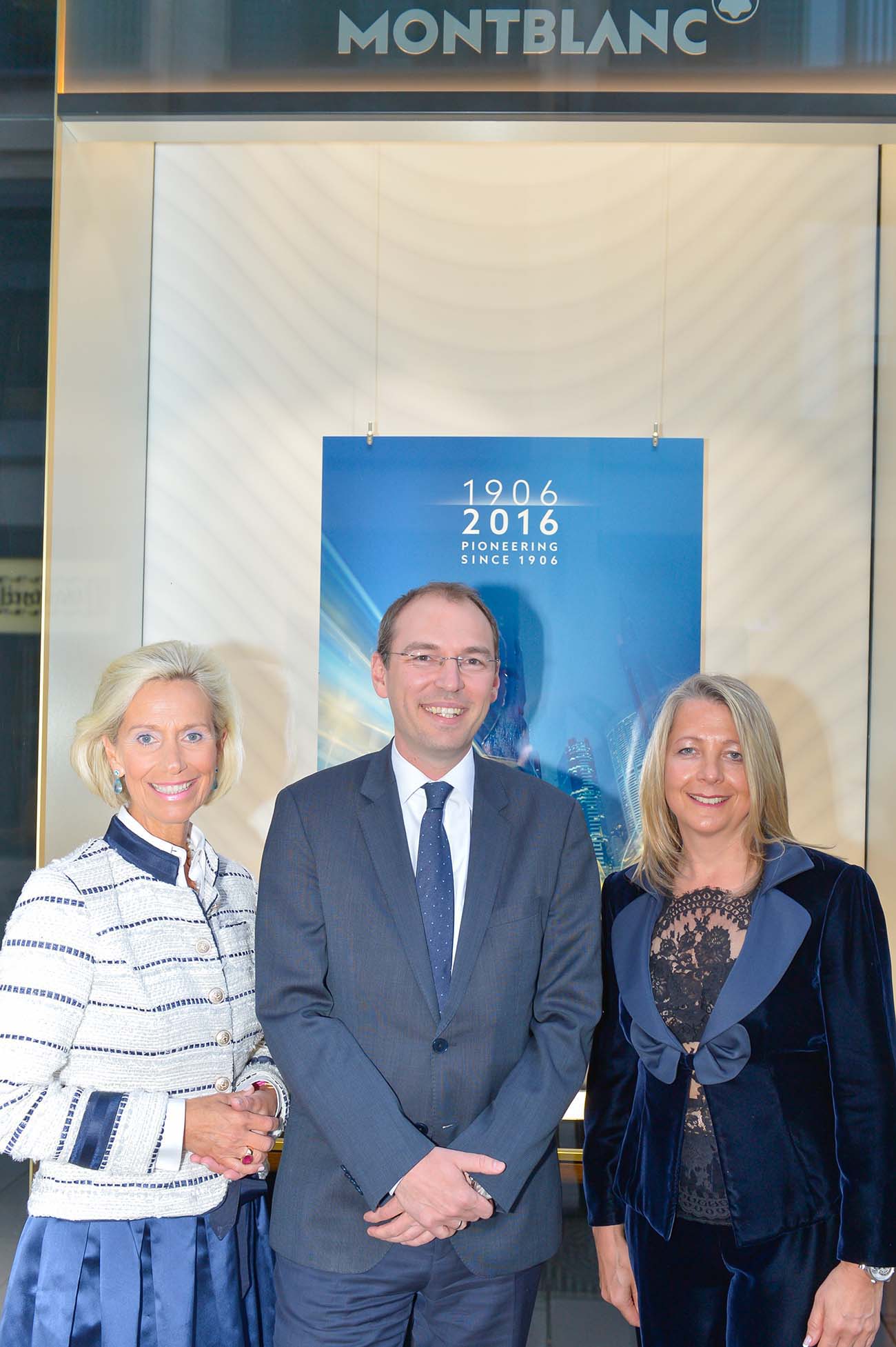 Kristina Tröger, Oliver Gößler (Deutschlandchef Montblanc) und Ulrike Stratmann