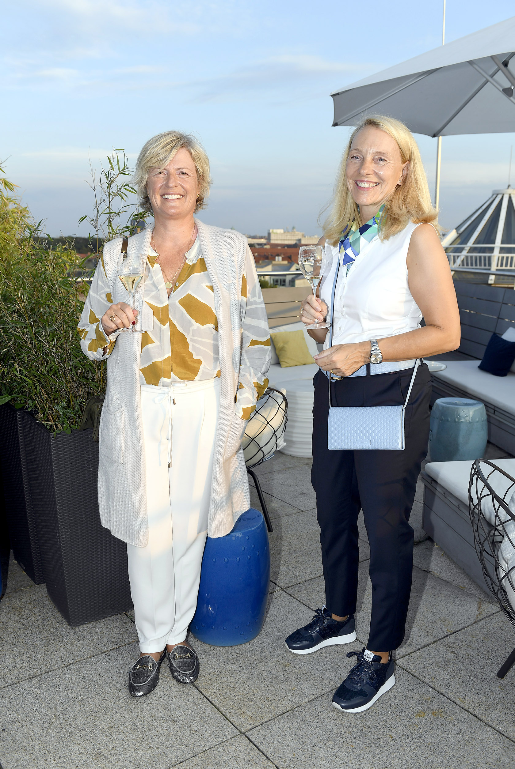 Anne Schenk und Andrea Brodtmann / Empfang und Vortrag: „Das Tor zu den Alpen – der Münchner Künstler Felix Rehfeld bereichert das renovierte Mandarin Oriental“ / CEU – Club europäischer Unternehmerinnen e.V. / München / 16. September 2020 / Bitte Fotovermerk: Agentur Schneider-Press/Frank Rollitz
