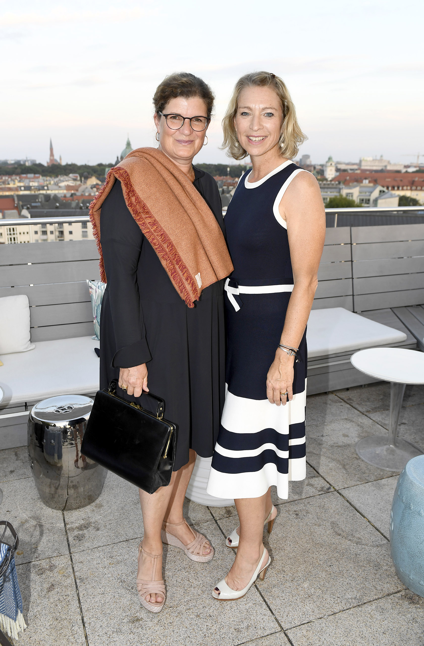 Bettina Burbach und Beate Heinrich / Empfang und Vortrag: „Das Tor zu den Alpen – der Münchner Künstler Felix Rehfeld bereichert das renovierte Mandarin Oriental“ / CEU – Club europäischer Unternehmerinnen e.V. / München / 16. September 2020 / Bitte Fotovermerk: Agentur Schneider-Press/Frank Rollitz