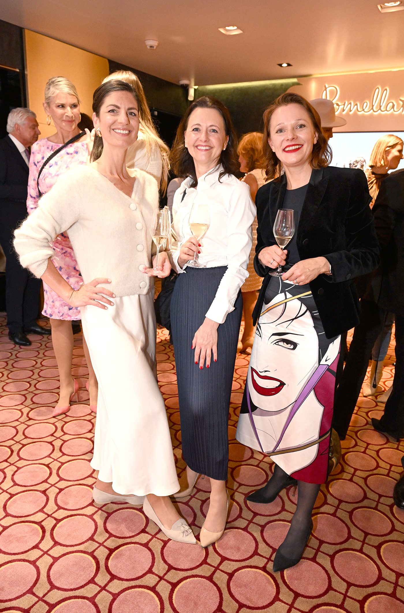 Kristina Tröger (Präsidentin Club europäischer Unternehmerinnen), Mon Muellerschoen und Andrea Schoeller mit Tochter Helena