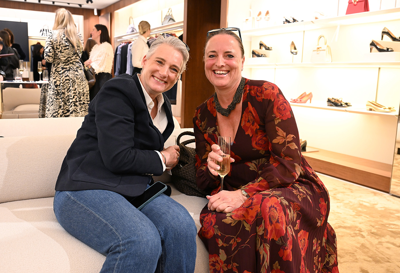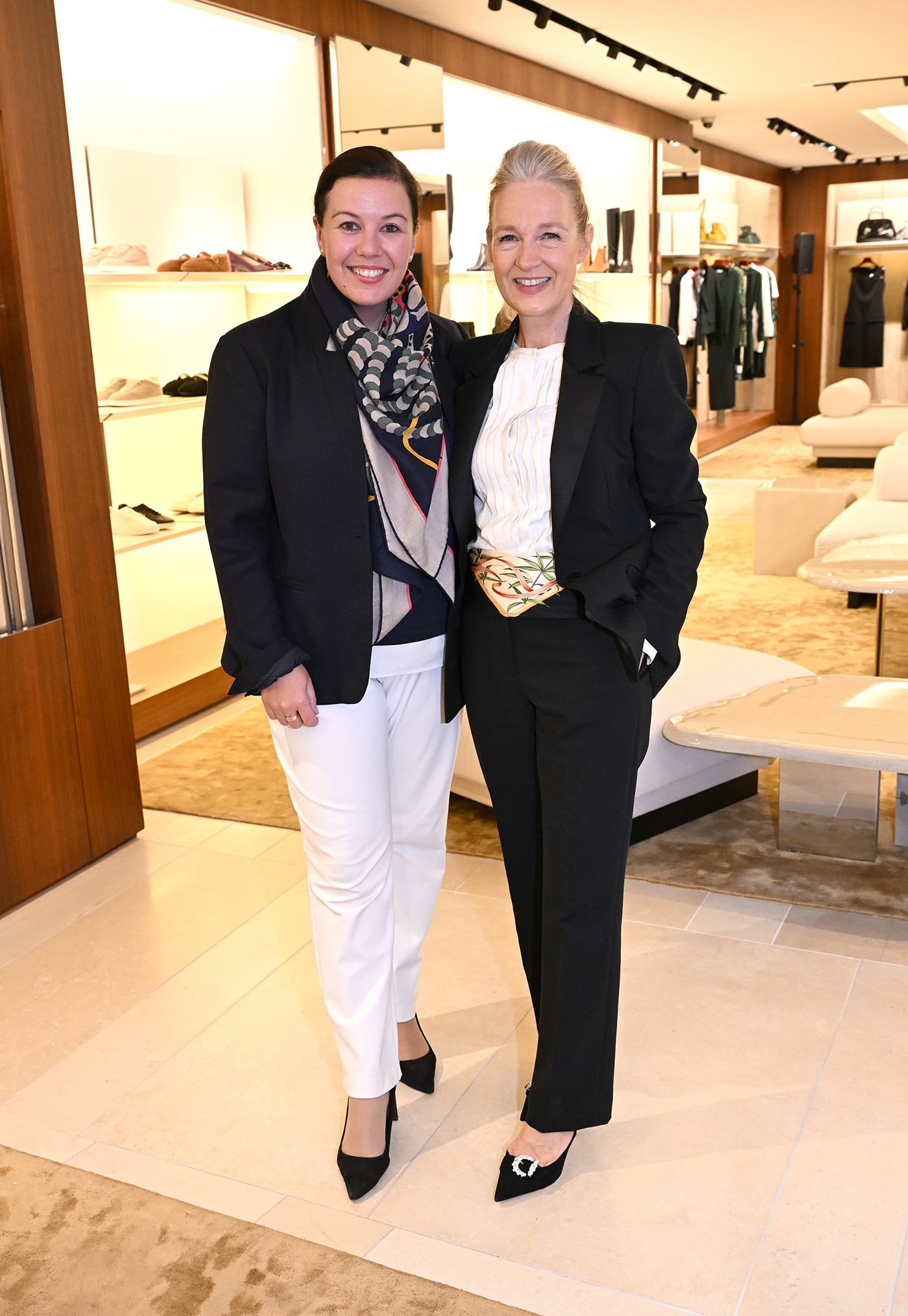 Im Gespräch mit Angelica Visconti und Kristina Tröger konnten die Gäste dann mehr über die einzigartige Erfolgsgeschichte von Ferragamo erfahren. Gegründet wurde das Unternehmen im Jahr 1927 als Schuhmanufaktur in Florenz von Salvatore Ferragamo, nachdem dieser zuvor sich in Hollywood einen Namen gemacht hatte, in dem er Schuhe für Filmstars entworfen und angefertigt hatte. Es waren aber von Anfang an vor allem auch die starken Frauen, welche das weltberühmte italienische Modehaus prägten, wie an diesem Abend deutlich wurde. „Es waren immer die die Designerinnen und Unternehmerinnen, die die DNA des Hauses mitgeprägt hatten“, so Angelica Visconti. Sie betonte zudem die Bedeutung der Verbindung von Tradition und Moderne und verdeutlichte, wie wichtig es sei, weibliche Perspektiven in Führung und Kreativität zu stärken.