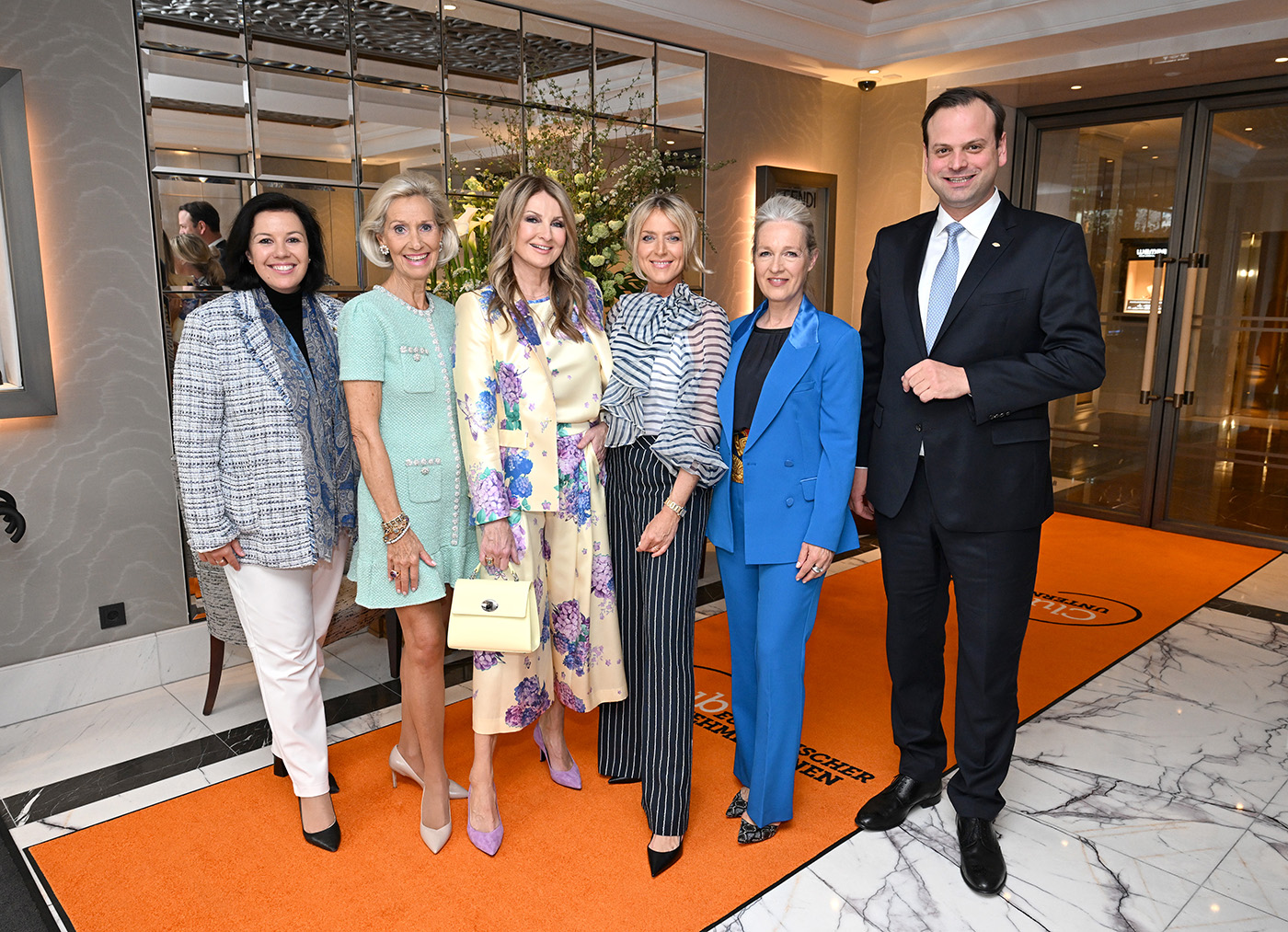 Katharina Berchtold, Kristina Tröger (Präsidentin Club europäischer Unternehmerinnen), Frauke Ludowig, Sandra Maurer und Sabine Menges-Rosowski mit Marc Epper (General Manager Hotel Mandarin Oriental)