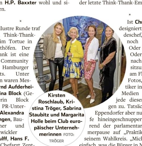 | Filmbeitrag, Galerie, News, Vortrag, Hamburg, Hotel Vier JahreszeitenAlexandra von Rehlingen SvR PR, Julia Becker Verlegerin und AR-Vors. Funke Medien, Kristina Tröger CeU-Präsidentin, Nora Marx Aufsichtsrätin und...