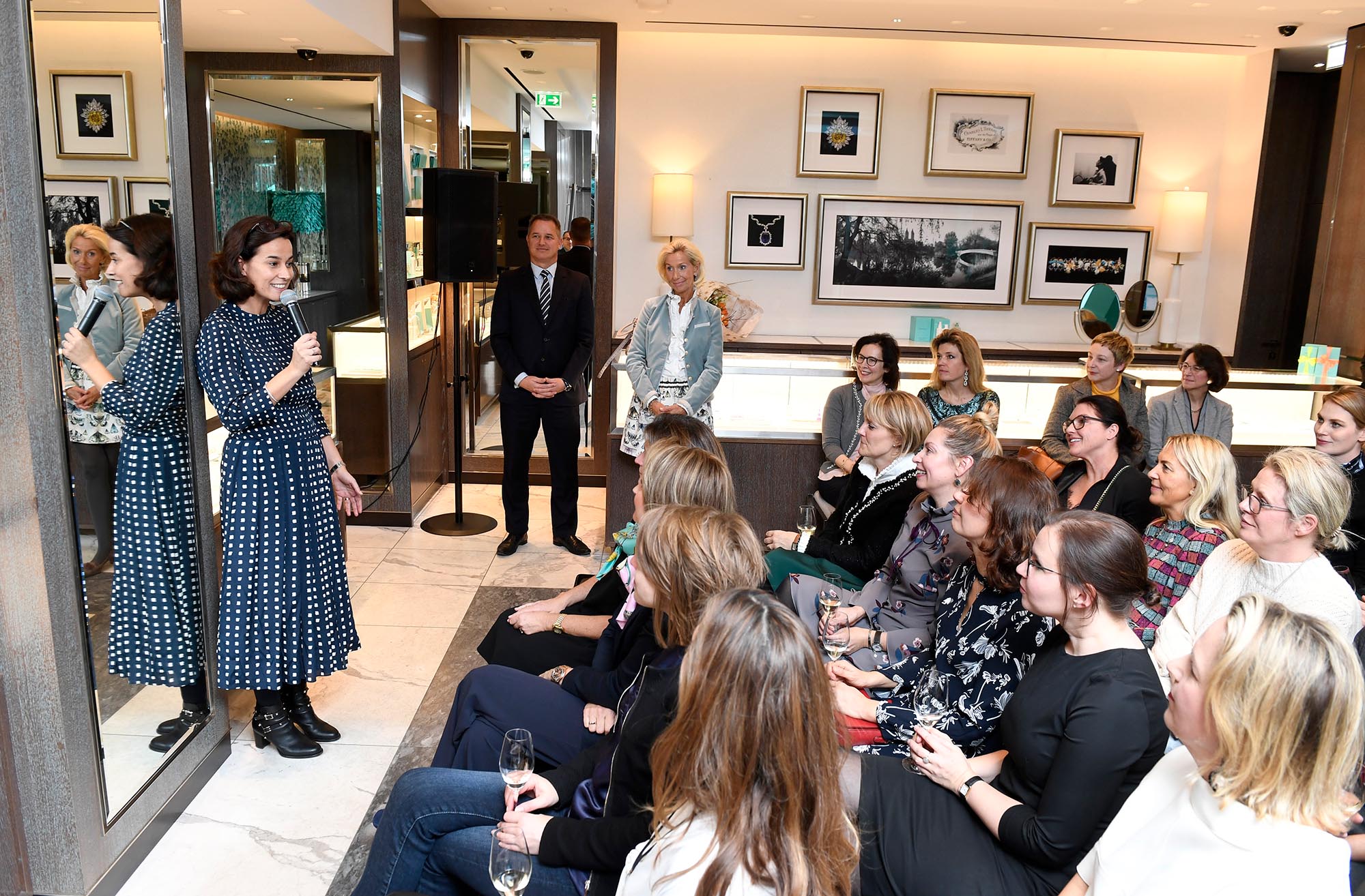 Auf Einladung von Sandra Mohsni, Geschäftsführerin von Tiffany u.a. in Deutschland und Österreich, konnten die teilnehmenden 50 Unternehmerinnen bei Aperitif und kleinen Köstlichkeiten in die Welt der Diamanten und die langjährige Geschichte des Hauses Tiffany eintauchen.